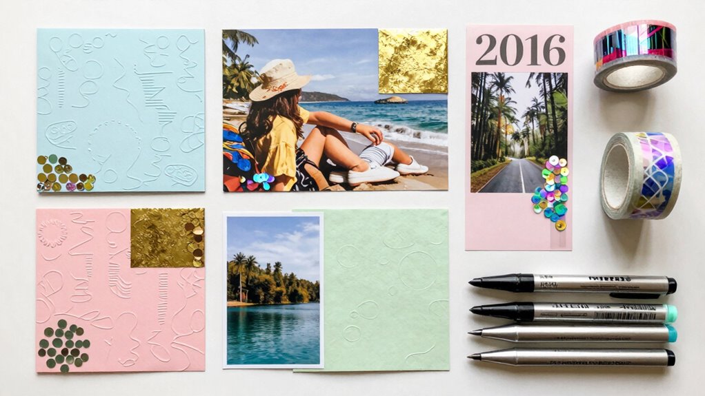 When working with delicate or vintage paper supplies, I prefer gentle adhesives that treat my treasures kindly. Archival-quality glue sticks and acid-free double-sided tapes are my go-to—they’re like a soft hug for your paper. These options stick well without causing damage or yellowing over time. I always test a small area first, ensuring my vintage finds stay beautiful and intact, ready to inspire for years to come.
